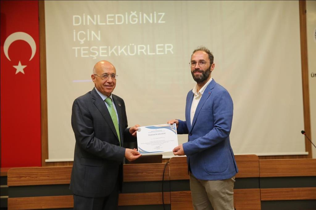 Program, soru-cevap bölümünün ardından Prof. Dr. E. Mustafa Eyyuboğlu’nun Dr. Öğr. Üyesi Haluk Kurtuluş’a ve Lisansüstü Eğitim Enstitüsü Müdürü Doç. Dr. İbrahim Hüseyni’nin, seminerlerin koordinasyonunu sağlayan Dekan Yardımcımız Dr. Öğr. Üyesi Hüseyin Aksu’ya “Teşekkür Belgesi” takdim etmesiyle sona erdi.